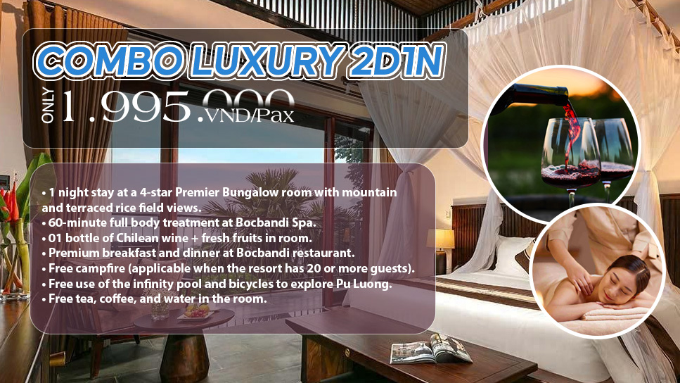 Luxury combo 2d1n - indulge in an elegant escape amid the wilderness of Pu Luong