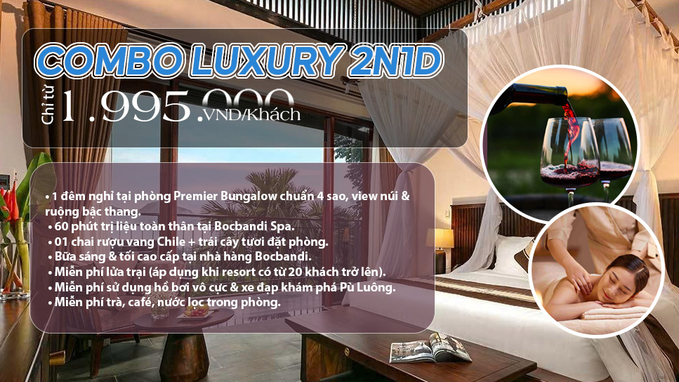 Combo luxury 2n1đ - trải nghiệm nghỉ dưỡng sang trọng giữa đại ngàn Pù Luông