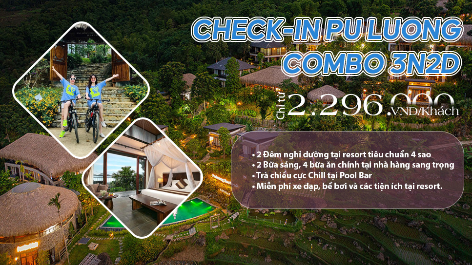 Combo “Check-in Pù Luông” 3n2đ chỉ 2.296k/người